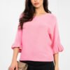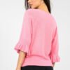 Stylish women’s sweater of standard length, perfect for both everyday wear and more special occasions. Made of high-quality blend of viscose, polyester, and nylon, it provides comfort and durability. The smooth pattern gives it a timeless character, while subtle details add feminine charm. The model features a round neckline and 3/4 sleeves finished with a delicate ruffle, emphasizing elegance and lightness of the outfit. It is a perfect choice for women who appreciate classic style in a modern version.