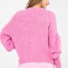 Stylish women’s sweater with a casual character, which will work both for everyday wear and at work. A model of standard length and without fastening ensures comfort and freedom of movement, perfectly complementing everyday stylizations. The sweater is made of a soft and pleasant to the touch blend of acrylic, polyamide, viscose, and wool, which guarantees thermal comfort and material durability. The dominant pattern gives it a fashionable look, while smooth elements balance the whole, creating an elegant effect. Puffy sleeves add character and feminine charm to the whole, making the sweater an eye-catching and versatile wardrobe piece for many occasions.