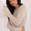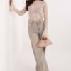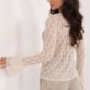 Elegant, fitted lace blouse is a unique model that will work perfectly for formal occasions, parties and in stylish work outfits. Made of high quality viscose with elastane, it impresses with softness, elasticity and comfort of wearing. The varied texture of the material gives the whole a subtle refined elegance. The blouse has a standard length and long bell sleeves, which elegantly widen towards the bottom, creating a delicate, feminine accent. Additionally, the sleeves are decorated with ruffles, emphasizing the elegant, slightly romantic character of the model. The boat neck beautifully highlights the neckline and shoulders, adding lightness and class to the styling. This is a proposal that combines chic, femininity and comfort. Perfect for special outings, family celebrations, for the office or for evening meetings wherever you want to look elegant and classy.