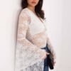 Elegant lace blouse with a stylish and feminine character, perfect for everyday outings, formal occasions, and parties. The model attracts attention with a varied texture of the material, which gives the whole a unique, subtle charm. The blouse is made of a combination of polyamide and elastane, which provides elasticity, a perfect fit to the silhouette, and comfort when wearing. The short length combined with a long, flared sleeve from the elbow creates an impressive, modern cut. The V-neck subtly emphasizes the neckline and bust, adding elegance and lightness. The model has no fastening and is put on over the head. Additionally, the blouse has a lining on the front, at chest height, which provides comfort and aesthetic finishing. This is an ideal proposal for women who want to combine elegance with a striking, trendy design.