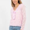 Stylish lace blouse with an elegant character, perfect for formal occasions, work, parties, and daily stylizations in a more elegant version. The varied texture of the material gives the whole a unique and subtly decorative look. The blouse is made of high-quality viscose with the addition of elastane, which ensures comfort of wearing and delicate fitting to the silhouette. The model is of standard length, with long sleeves and a classic, round neckline. The lack of fastening makes the blouse comfortable and easy to put on. At the front there is a lining, which increases the comfort of wearing and the aesthetics of the finish, and the decorative jabot adds elegance and feminine character to the whole. It is an ideal choice for fabric pants, skirts or under a blazer, both for formal meetings and special occasions.