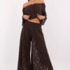 Elegant lace palazzo pants are a stylish proposition for women who value elegance and comfort. Made of delicate lace on a lining, they combine subtle charm with the comfort of everyday wear. The cotton and nylon blend material makes them lightweight, breathable, and pleasant to the touch. The wide palazzo-style legs beautifully flow with movement, adding lightness and a modern character to the silhouette. The absence of fastening ensures easy wearing and a smooth finish at the waist. This model is perfect for various occasions, for work, everyday wear, as well as for parties or elegant outings. Stylish lace and classic length create a wow effect effortlessly, just add a simple top or an elegant blouse.