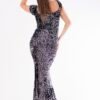 Long elegant dress with fitted cut of mermaid type. Dress is made of sequined material. Dress is fastened with a covered zipper. Ideal for many occasions.