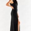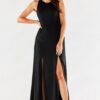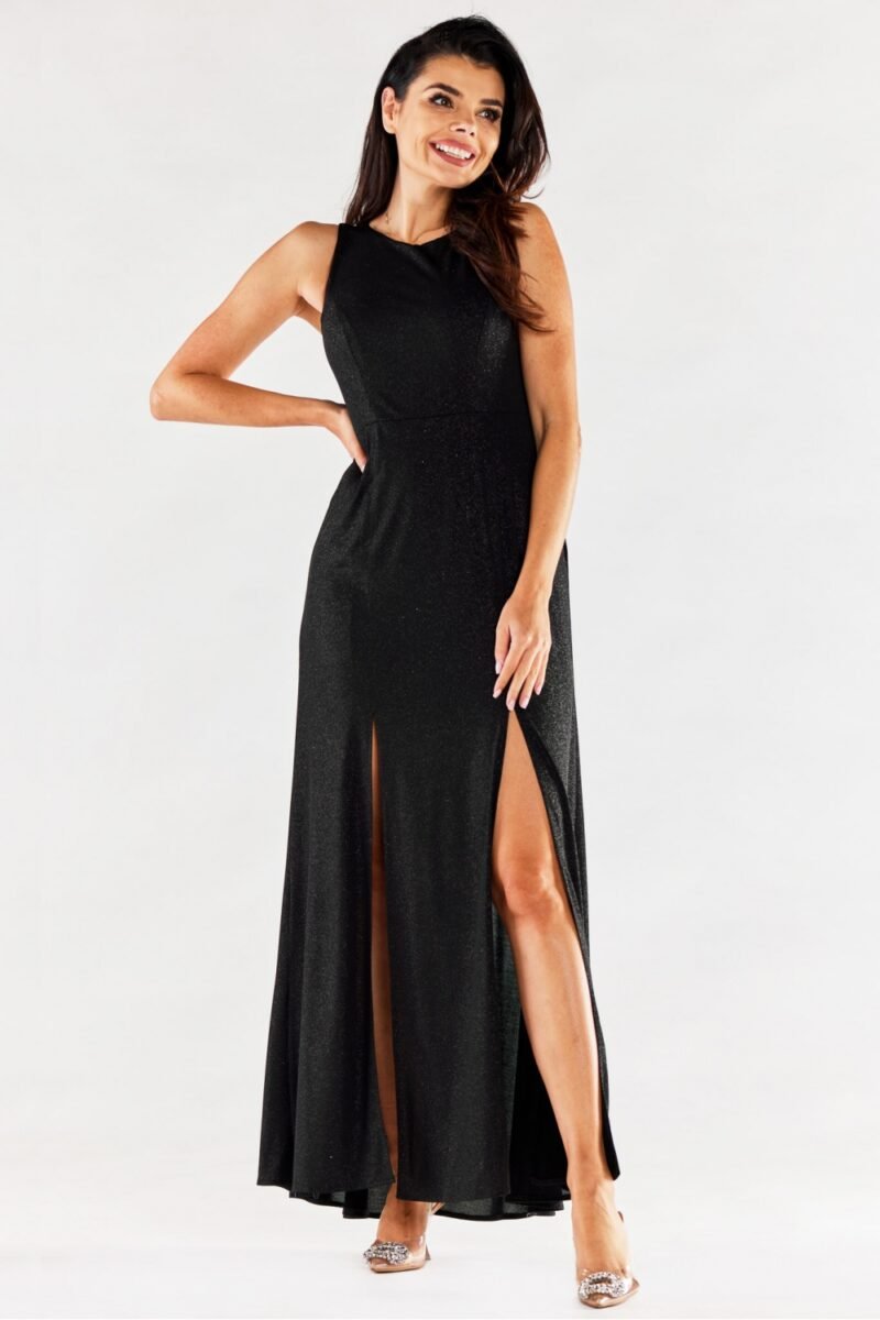A long, elegant gown, fitted at the bust, waist and hips. There are two slits on the front to expose the legs. The dress fastens at the back with a covered zipper. Sewn on an elastic lining. The dress is made in Poland.