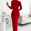 Glitter maxi, long dress with envelope neckline and leg slit. Made of stretchy red fabric with glitter. Brand numoco. Polish production.