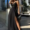 Extremely girly dress model sewn from lovely lace. Dress on thin straps, with a heart neckline, finished with a minimalist mesh. The bottom is layered, flared, intertwined with a belt. The dress is fastened with a covered zipper and has a lining. Model available in a beautiful range of colors.