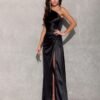 The Inez dress is made of a pleasant, flowing satin fabric that adds a chic and elegant touch. The dress is distinguished by an interesting neckline revealing one shoulder, thanks to the use of a wide shoulder strap with creases. The perfect fit at the waist and the long, airy skirt with a leg slit will perfectly emphasize the assets of the silhouette. The Inez dress guarantees a dignified and elegant look through its classic cut enriched with an original one shoulder neckline. Elegant cut of the dress broken with an exposed shoulder and sexy leg slit attracts attention and emphasizes the silhouette. The dress will be perfect for special occasions such as: wedding, communion, prom, corporate event.