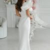 Elegant one shoulder dress with decorative feathers. Ideal for special occasions, it combines modern style with classic charm. Comfortable and eye-catching, it adds subtle lightness and elegance. The dress is fastened with a covered zipper and has a lining.