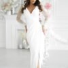 Phenomenal creation with two sequin sleeves. Delicate heart-shaped neckline, slightly exposes the bust. The bottom of the dress is layered, with a striking slit on the leg. Sequin sleeves add charm and chicness, which are a perfect addition to the creation. The dress has a lining, fastened with a covered zipper. Available in lovely colors.