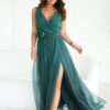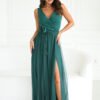 Beautiful, long dress that delights with its unusual cut. Made of airy fabric, it perfectly emphasizes the silhouette. The top of the dress has a delicate neckline, and the two-layered bottom with a slit on the leg adds charm to the creation. The dress comes with a rose belt that can be wrapped in many ways, both around the neck and waist, allowing for individual styling adjustment.