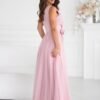 Beautiful, long dress that impresses with its extraordinary cut. Made of airy fabric, it perfectly emphasizes the silhouette. The top of the dress has a delicate neckline, and the double-layered bottom with a slit on the leg adds charm to the creation. The dress comes with a rose belt that can be wrapped in many ways, both on the neck and waist, allowing for individual styling adjustment.