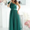 Our long dress was created for women who appreciate both comfort and style. Made of light, airy mesh, it gently flows around the silhouette, creating an extremely feminine and subtle line. A high slit on the leg adds sensuality to the creation, and a satin ruffle on one shoulder gives it a unique character. The dress has a lining and fastens with a covered zipper. Ideal for special occasions.