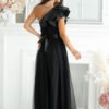 Our long dress was created for women who appreciate both comfort and style. Made of light, airy mesh, it gently flows around the silhouette, creating an extremely feminine and subtle line. A high slit on the leg adds sensuality to the creation, and a satin ruffle on one shoulder gives it a unique character. The dress has a lining and fastens with a covered zipper. Ideal for special occasions.