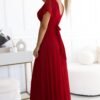 The NASTIA dress from the Numoco Basic brand is a delicate, long creation with a neckline and short sleeves. Made of light, burgundy tulle, which adds lightness and airiness to it. The dress has padded cups, which provide excellent support, and the tie at the waist subtly emphasizes the waist. This is a unique proposal with a feminine and romantic character. Produced in Europe, it combines high quality workmanship and elegant design. Perfect for evening outings and special occasions.