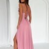 Elegant and at the same time simple long dress with a slit at the bottom. The dress fastens with a concealed zipper. The front with a water neckline and thin straps, the back with a braided tie. An ideal proposal for many occasions.