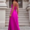 Elegant and at the same time simple long dress with a slit at the bottom. Dress fastened with a concealed zipper. Front with a water neckline with thin straps, back with a braided tie. An ideal proposal for many occasions.