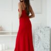 A long dress with a fitted cut, adjustable straps, and a hidden zipper. Deep neckline, bottom with a long slit. An ideal proposal for many occasions.