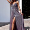 Long dress with straps, deep wrap neckline, cut under the bust. Flared bottom with a long slit. An ideal proposition for many occasions.