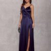 The long Salma dress made of soft satin fabric guarantees an elegant and dignified look as well as exceptional comfort. The pleated wrap neckline perfectly emphasizes feminine shapes and adds nonchalance. Thin straps, classicly connected to the back of the dress, provide good support and exceptional comfort, seductively revealing the shoulders. Fastened at the back with a concealed zipper. The subtly flared cut of the dress has been enriched with a sexy slit on the leg, adding a touch of wildness. The Salma dress is a versatile and classic style that will work for all types of occasions, such as prom, wedding, corporate party, New Year’s Eve party.