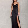 The long Alessandra dress with straps is made of elegant satin fabric that gracefully envelops the silhouette and accentuates its assets. The draped neckline and bold back lacing attract attention and ensure a unique and elegant character of the outfit. The maxi length and thigh-high slit add a touch of fierceness and mystery. The lacing at the back, besides the visual effect, allows for adjustment and customization of the strap length. The Alessandra dress is perfect for women who want to emphasize their femininity and appreciate bold and unconventional dress cuts. Alessandra is ideal for all kinds of occasions, such as prom, wedding, corporate party, New Year’s Eve.