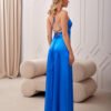 The long Alessandra dress with straps is made of elegant satin fabric, which beautifully envelops the silhouette and emphasizes its assets. The wrap neckline and bold tie at the back attract attention and provide a unique and elegant character to the outfit. The maxi length and thigh-high slit add a touch of fierceness and mystery. The lacing at the back, apart from the visual effect, allows for adjustment and customization of the strap length. The Alessandra dress is perfect for women who want to emphasize their femininity and like bold and unique dress cuts. Alessandra is perfect for all kinds of occasions, such as prom, wedding, corporate party, New Year’s Eve.