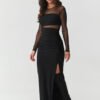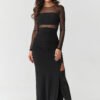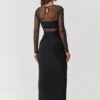 Enter the world of elegance that hypnotizes at first glance. This black maxi dress with mesh is a proposal for women who are not afraid to shine and want to feel absolutely special. The fitted cut perfectly emphasizes the silhouette, and subtle ruching at the waist shapes the figure, giving it a sensual lightness. The transparent top made of delicate mesh gives the dress a mysterious character where elegance meets courage. Additionally, there is an independent top under the tulle that you can use for other stylizations. The sensual slit reveals the leg with every step, adding feminine magnetism to the overall look. The gold button at the back not only serves a practical function, but also adds a jewelry-like character, beautifully contrasting with the deep black material. This subtle accent gives the dress a luxurious look while still being exceptional in every detail. This is not just an ordinary evening dress, it is a creation in which you will feel that all eyes are on you. Perfect for a wedding, ball, prom, or elegant dinner, it will always make you stand out with style and confidence. Bold, hypnotizing, perfect for a woman who wants to make a stunning impression and leave an unforgettable memory, just like the dress itself. Tulle: 100% polyester.