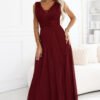 An elegant long evening dress Numoco Basic delights with its classic cut and subtle sheen. The soft, elastic material beautifully lays on the silhouette, and the wrap V-neck and wide belt emphasize the waist, providing comfort throughout the evening. This timeless proposal is perfect for a wedding, prom, New Year’s Eve party, or family celebrations. The maxi length, flared bottom gives freedom of movement and an elegant look on the dance floor. A delicate, shiny accent adds an evening character to the outfit. Create a styling with your favorite heels and delicate jewelry. This dress is a sure choice when comfort, class, and elegance matter.