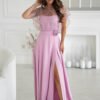 Elegant dress with thin straps, made of light material, complemented by a shiny sequin bolero with a rose on the belt. The shiny finish adds elegance and glow to the styling, making it an ideal choice for evening outings and special occasions. The dress is fastened with a concealed zipper, making it easy to put on and take off the outfit.