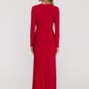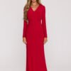 Elegant and extremely feminine maxi dress M891 made of smooth knit fabric, which delights with its softness, elasticity, and comfort of wearing. The material beautifully adjusts to the silhouette, while not restricting movement. The model features a V-neckline that subtly emphasizes the neck and neckline, as well as long, fitted sleeves, giving the whole an elegant character. The waist with delicate draping accentuates feminine shapes, and the long, slightly flared bottom creates a sensual and slim silhouette. An additional advantage is a separate scarf that can be styled in various ways – tie around the neck, waist, or use as a hair accessory. The dress does not have pockets or lining, which ensures its lightness, and the concealed zipper on the side guarantees easy putting on and aesthetic finish. The model was designed and sewn in Poland with attention to every detail. This is a proposal for women who appreciate minimalist elegance, comfort, and timeless style.