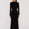 Elegant and extremely feminine maxi dress M891 made of smooth knit fabric, which amazes with its softness, elasticity, and comfort of wearing. The material beautifully fits the silhouette, not restricting movement. The model features a V-neckline that subtly accentuates the neckline and décolletage, as well as long, fitted sleeves, giving the whole an elegant character. The waist with delicate draping accentuates feminine shapes, and the long, slightly flared bottom creates a sensual and slim silhouette. An additional advantage is a separate sash that can be styled in various ways – tied around the neck, waist, or used as a hair accessory. The dress does not have pockets or lining, ensuring its lightness, and the concealed zipper on the side guarantees comfortable wearing and aesthetic finish. The model was designed and sewn in Poland with attention to every detail. It is a proposal for women who appreciate minimalist elegance, comfort, and timeless style.
