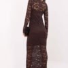 Subtle and feminine lace maxi dress is a proposal for women who appreciate elegance and delicacy in their everyday outfits. Made of fabric with a varied texture, it impresses with lightness and intricate lace finishing, which adds a unique charm to the styling. The model has long sleeves and a round neckline, giving it a classic and timeless character. The lack of fastening makes the dress comfortable and easy to put on, and the attached slip provides comfort and coverage in the right places. Made of high-quality blend of polyester, viscose, and elastane, it perfectly fits the silhouette and drapes beautifully. The maxi length visually slims the figure and adds elegance. Ideal as an everyday dress, but will also work well in more elegant stylings, just choose the right accessories.