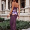 Sensual and elegant maxi dress, fastened at the back with a hidden zipper, which subtly emphasizes the back line. The model has thin straps, exposing the shoulders and neckline, as well as pleats on the front, which add lightness and delicately shape the silhouette. The bottom of the dress has a wrap-around slit, beautifully highlighting the leg with every step, giving the whole a uniquely feminine character. Made of soft, slightly stretchy material, it fits perfectly on the body and ensures comfort when worn. An ideal choice for evening outings, elegant receptions, or romantic dinners.