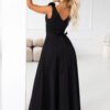 Imagine a black maxi dress that combines timeless elegance with modern sensuality. This is one of those creations that stands out from classic evening gowns at first glance – with subtle charm, lightness of movement, and perfect cut. Perfect if you are looking for an elegant black dress for a wedding, gala, or any special occasion. The V-neckline elongates the neck, and the fitted top shapes the waist, creating an hourglass figure effect. The three-dimensional rose on the shoulder not only adds character but also beautifully accentuates the collarbones and shoulders. This model is the perfect black maxi dress that slims the silhouette, designed so that every figure looks elegant and feminine. The deep, modern slit on the leg makes the dress look light and spectacular while walking or dancing. This is one of those details that make a difference – thanks to it, the black long dress becomes an ideal proposition for an evening outfit, prom, New Year’s Eve, or wedding. The material falls in soft waves, creating a luxurious fluid effect. Numoco brand designs its dresses in Poland, ensuring precise finishing, comfort of wearing, and a construction that highlights the natural assets of the silhouette. This elegant black dress with a slit is a choice for women who want to invest in quality and a proven boutique style. If you are looking for a black maxi dress that combines classic with modern lightness and accentuates the feminine silhouette – this model was created just for you.