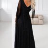 This brocade dress from the Numoco Basic line proves that you can have both. This is not just a little black dress, it’s a special occasion outfit. The deep, saturated black visually slims, and millions of sparkling particles ensure you won’t get lost in the crowd. Perfect when you want to walk into the room and just know you look great. This cut was designed with real female shapes in mind, not just mannequins. Why will you love this cut? The wide, draped belt acts like a soft corset, fantastically gathering the stomach and building hourglass proportions without uncomfortable pressure. The voluminous, tulle kimono sleeves are a masterful touch. They add lightness and elegance, while subtly masking the arms (so-called “wings”), giving you 100% freedom of movement. The V-neck wrap cut elongates the neck and beautifully showcases jewelry. Quality matters. The dress was made in European tailoring shops, guaranteeing straight seams and durable fabric. The elastic fabric works with the body in dance, instead of restricting it. Whether you wear size S or XXL – this dress will fit you flawlessly. Don’t wait for a special occasion to feel special. Order now and be ready for the WOW effect.