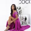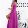 An elegant maxi dress created for special occasions. A model with a feminine, fitted cut that beautifully accentuates the waist and slims the silhouette. The top of the dress delights with a wrap neckline in the shape of a letter V, which subtly highlights the bust. The exposed shoulders are adorned with delicate sequined sleeves, adding shine and evening character to the whole look. Thin straps provide stability and comfort when wearing. An ornamental belt with sequin finishing is used at the waist, which effectively accentuates the proportions of the silhouette. The long, slightly flared skirt made of flowing material beautifully drapes in movement, and the high slit on the leg adds sensuality and lightness. The dress is fastened at the back with a concealed zipper, ensuring a perfect fit and aesthetic finish. An ideal proposition for: weddings, balls, proms, special occasions, elegant evening outings.