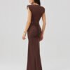 The elegant maxi dress with a fitted silhouette beautifully emphasizes the figure, and the ruching at the waist beautifully accentuates its shapes. The wrap neckline and high slit on the leg add feminine sensuality and lightness to the styling. The model was sewn in Poland with attention to the smallest details, which guarantees high quality and comfort of wearing. An additional advantage are the shoulder pads, which give the whole outfit a distinctive character and subtly shape the shoulder line. This is a perfect choice for a wedding, reception or evening out, just add heels, a clutch and jewelry to create an elegant, well-thought-out look.