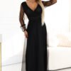 There are evenings when you don’t want to scream with styling. You want to enter quietly and make everyone turn their heads. This black dress is as elegant as classic, but has a soft, sensual movement. The light tulle layer flows with every step, and you feel that you finally have something on that looks confident. The top with a V-neck beautifully slims the neck and emphasizes the bust line. Long transparent sleeves add a wow effect in a very refined way, and the back with a deep cut reveals the back the way you like it: subtly, but with character. A tying appears at the waist, closing the whole in the most feminine way. This evening dress sets the mood before the first toast even begins. Perfect as a wedding dress, reception, gala, prom, New Year’s Eve, and any occasion when you want to be elegant but not stiff. If you are looking for a dress that makes an impression, you have just found it. European production.