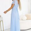 This blue maxi dress is a quick way to achieve a wow effect without overdoing it. The wrap neckline beautifully accentuates the bust, while the defined waist shapes the silhouette and adds lightness to movement. Subtle sparkles make you look fresh and elegant – from the first step into the room. For a big night out, opt for gold or silver sandals, a small clutch, and a smooth blazer, blue and shine will do all the work. For a more soft glam version, add pearl earrings and pinned-up hair to highlight the neckline. And if you want to break the elegance, pair with light sneakers and a short jacket, this Numoco evening dress still looks stylish, just more casually. Perfect for weddings, balls, proms, and elegant receptions.