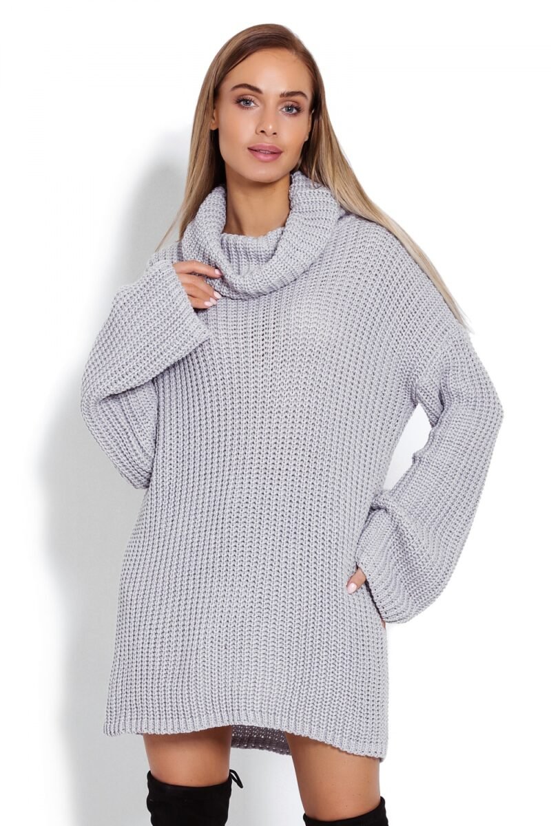 Sweater with a thick weave. A neckline finished with a turtleneck. Sweater with flared sleeves. Oversize cut.