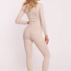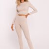 Leggings made of ribbed cotton knit fabric that provide comfort and a stylish look. The tailored cut fits perfectly to the silhouette, and the elastic waistband guarantees comfortable all-day wear. The legs have been slightly widened at the bottom and finished with delicate side slits, adding a fashionable touch to the overall look. These leggings, designed and sewn in Poland, combine functionality with modern design, working perfectly for everyday styling.
