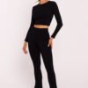 Leggings made of ribbed cotton knit fabric that provide comfort and a stylish look. The tailored cut fits perfectly to the silhouette, and the elastic waistband guarantees comfortable all-day wear. The legs have been slightly widened at the bottom and finished with delicate side slits, adding a fashionable touch to the overall look. These leggings, designed and sewn in Poland, combine functionality with modern design, working perfectly for everyday styling.