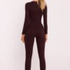 Leggings made of ribbed cotton knit fabric that provide comfort and a stylish look. The tailored cut fits perfectly to the silhouette, and the elastic waistband guarantees comfortable all-day wear. The legs have been slightly widened at the bottom and finished with delicate side slits, adding a fashionable touch to the overall look. These leggings, designed and sewn in Poland, combine functionality with modern design, working perfectly for everyday styling.