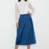 A long skirt made of delicate material with a fastening at the waist perfectly emphasizes the feminine figure. Two visible buttons at the waist add extra charm.