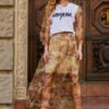 A maxi length tulle skirt with a short viscose half slip is a perfect choice for ladies who like to emphasize their femininity. The skirt looks great accompanied by a loose-fitting women’s sweater, as well as a classic top. It can also be worn with a cotton blouse with buffet sleeves and matching tulle on the skirt. Thanks to the floral prints, the skirt is very romantic and spring-like. It consists of two layers: a viscose half-slip and a top layer of transparent floral tulle. A thick belt fastened at the waist makes the skirt fit perfectly, emphasizing the narrowest part of the body. Long flowing tulle, combined with a short covering slip, shapes the silhouette perfectly, masking all imperfections, most often visible on the thighs. Boho style skirt is an absolute hit of the last months. Any accessories such as summer boots, crochet cape or a large hat are welcome here. This is the perfect skirt for fans of creative and timeless outfits.