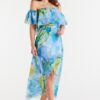 Long, asymmetrical chiffon skirt with elastic lining, adjustable with elastic at the waist.
