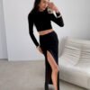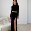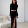 Elegant maxi skirt with eye-catching ruching and a high slit on the leg, subtly emphasizing the silhouette and giving the outfit a sensual character. The fitted cut perfectly shapes the body, ensuring comfort throughout the day. Designed and made in Poland, this model will work great in an elegant combination with a fitted top and heels, as well as in a modern version with a minimalist blouse and sandals. An elastic band is sewn into the waist, guaranteeing a perfect fit.