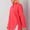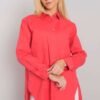 Coral cotton shirt with a longer cut and long sleeves. The shirt is buttoned.