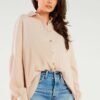 Oversized shirt is a real must have in women’s closet. The model with buttons allows you to adjust the depth of the neckline depending on your preferences. The loose-fitting cut covers up minor figure imperfections and is a great alternative to a classic shirt.