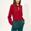 The maroon teal shirt has an unusual neckline, which is additionally buttoned, making it even more charming. If you are looking for a shirt that you can tuck into a high-waisted skirt and finally feel comfortable all day long, this is a hit. In addition, you can combine it with elegant pants, stiletto or flat-heeled shoes. This shirt as a base gives you plenty of possibilities for soft office styling.