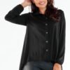 Elegant shirt with long sleeves and an extended back. Cuffs finished with elastic add a loose character to the shirt. The loose cut of the shirt allows you to mask delicate imperfections. Combined with imitation leather pants, you can create an urban style styling. Product designed and sewn in Poland.